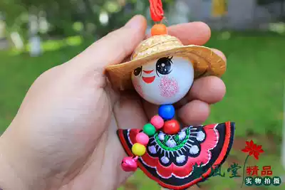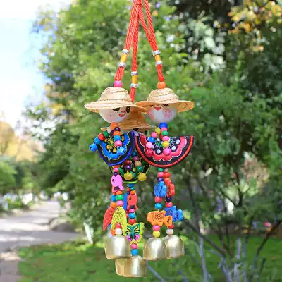 Handmade wheat straw hat wind chimes embroidery sunny day doll car pendant door and window hanging ornaments Yi people wind door bell