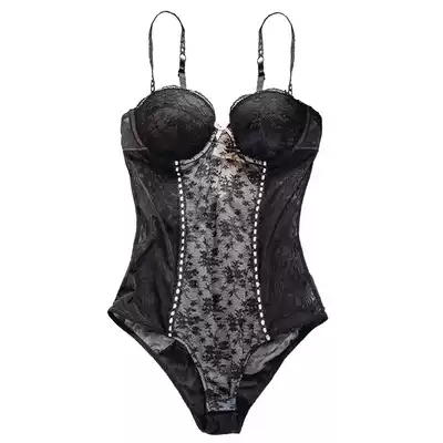 True love home foreign trade single ultra-thin hollow perspective sexy Cup jumpsuit under open crotch body small night clothes