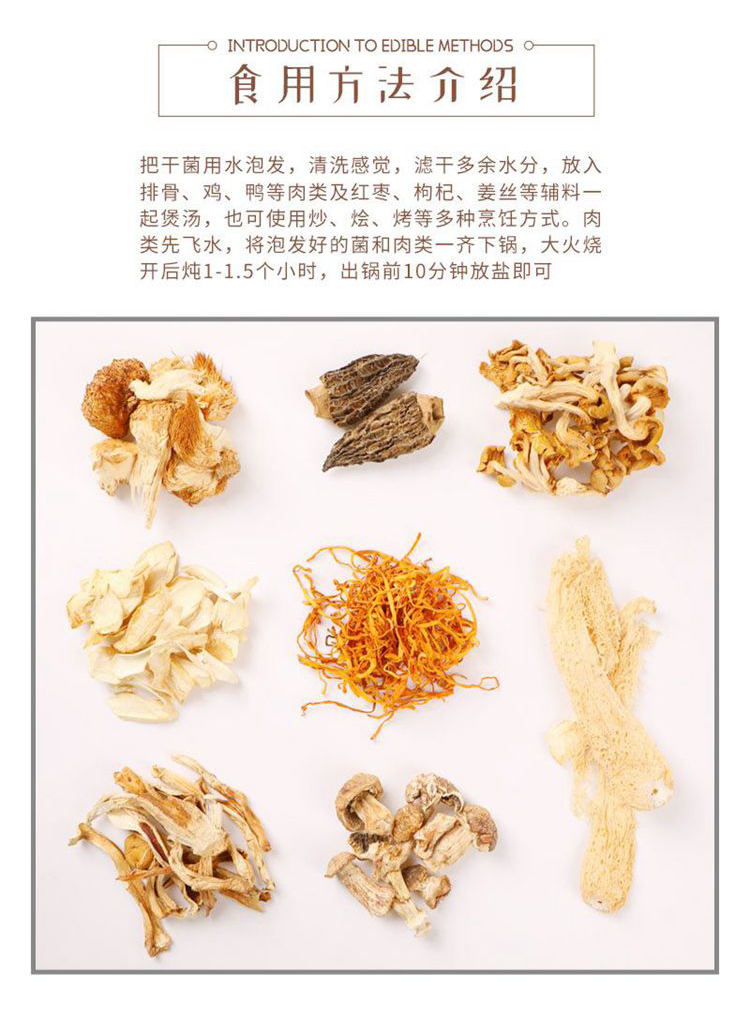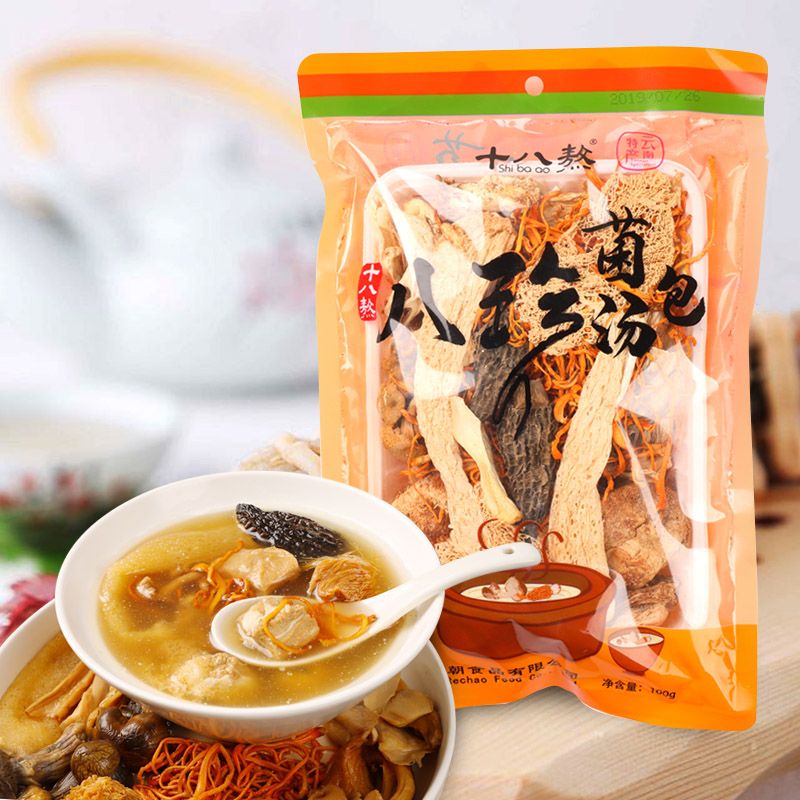 Yunnan 8 types of bacteria soup pack Seven Color Wild Fungus goat belly mushrooms Bamboo Sheng Monkey Head Mushrooms Ribs Mate 100g Buy 3 and send 1