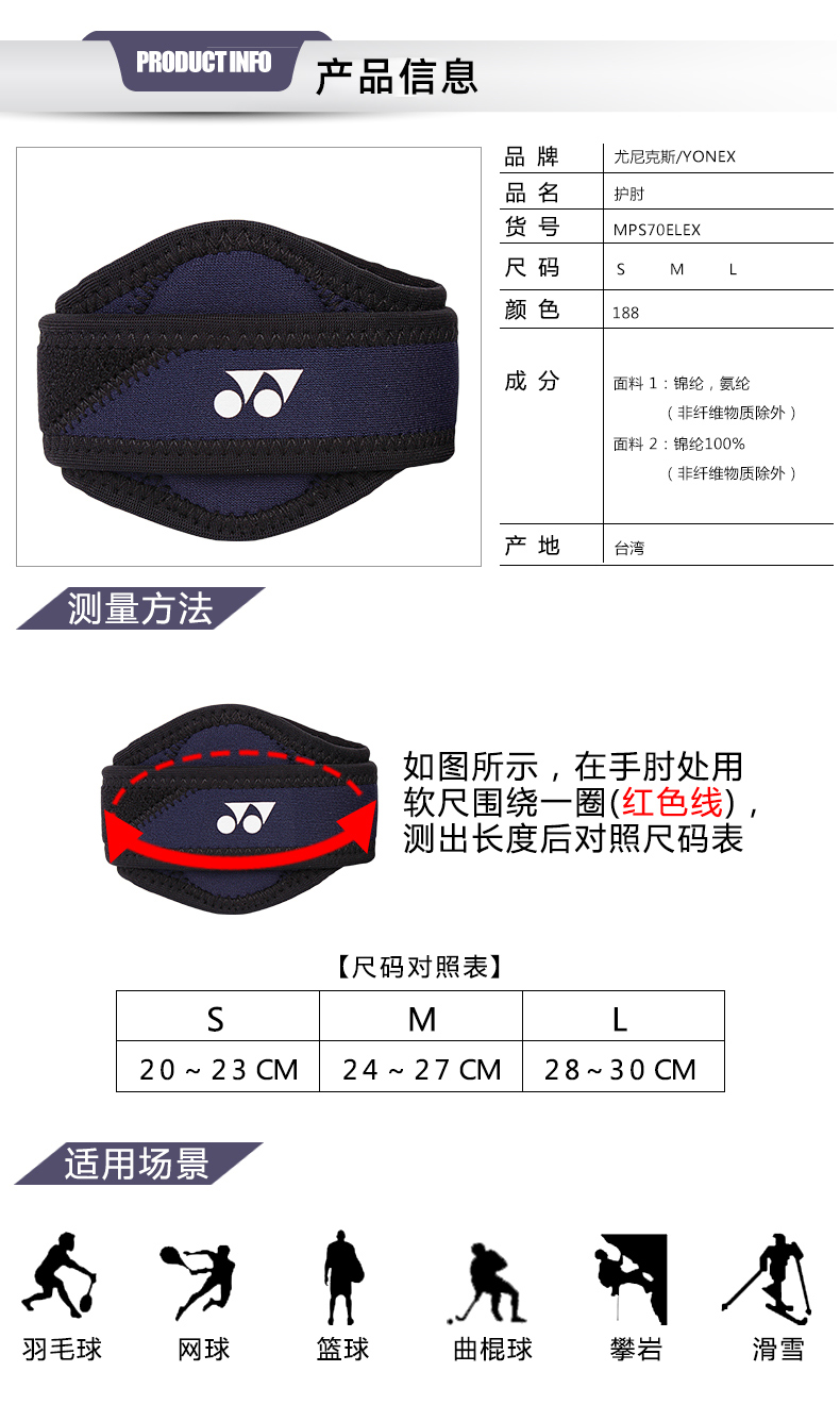 YONEX Younnieks Yy Elbow MPS70 Badminton Tennis Fitness Running Sports Yy Elbow