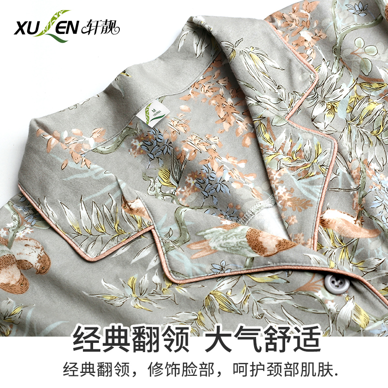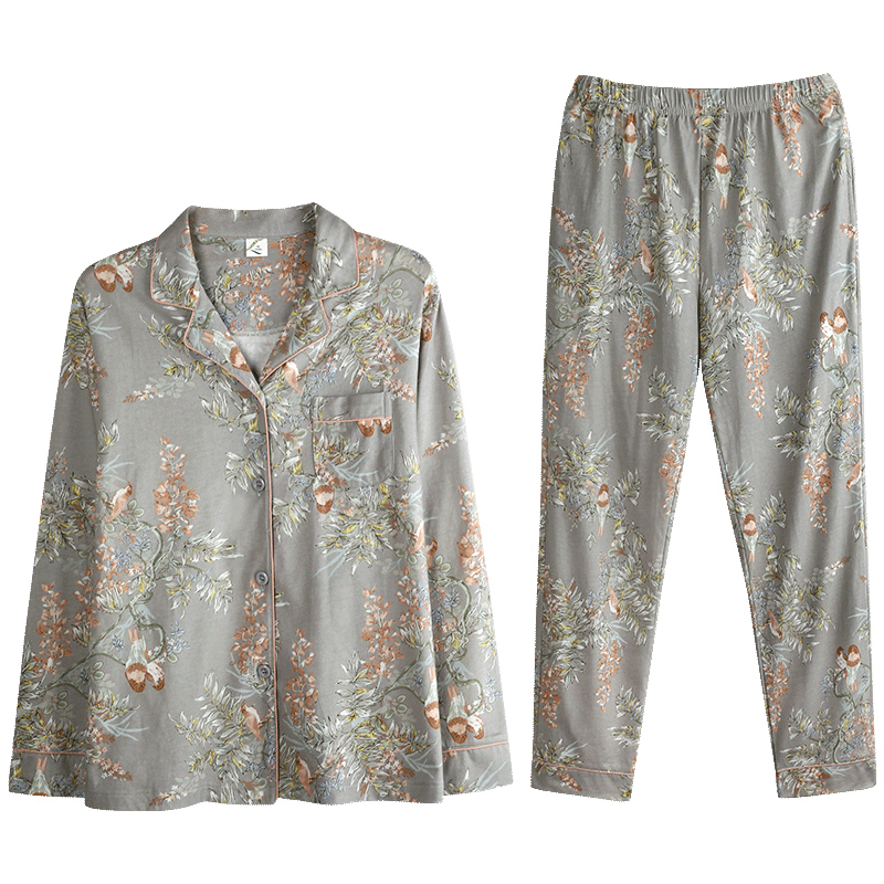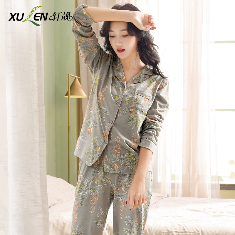 Pajamas Women's spring and autumn spring long-sleeved cotton thin cotton home clothes large size loose middle-aged mother suit