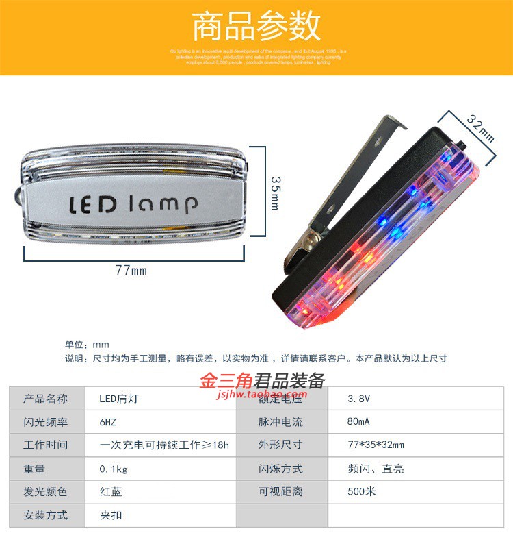 Special Duty Security LED Red Blue Burst Shoulder Light Signal Lamp Identification Light Traffic Patrol Warning Light Lifelights Recharge