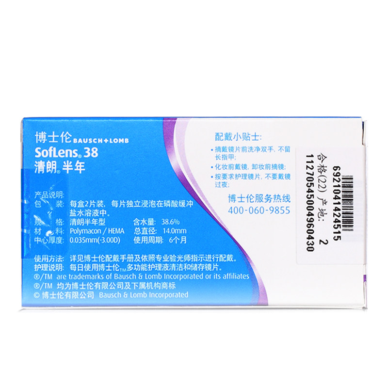Bausch & Lomb myopia contact lenses half a year toss 2 pieces imported clear and comfortable