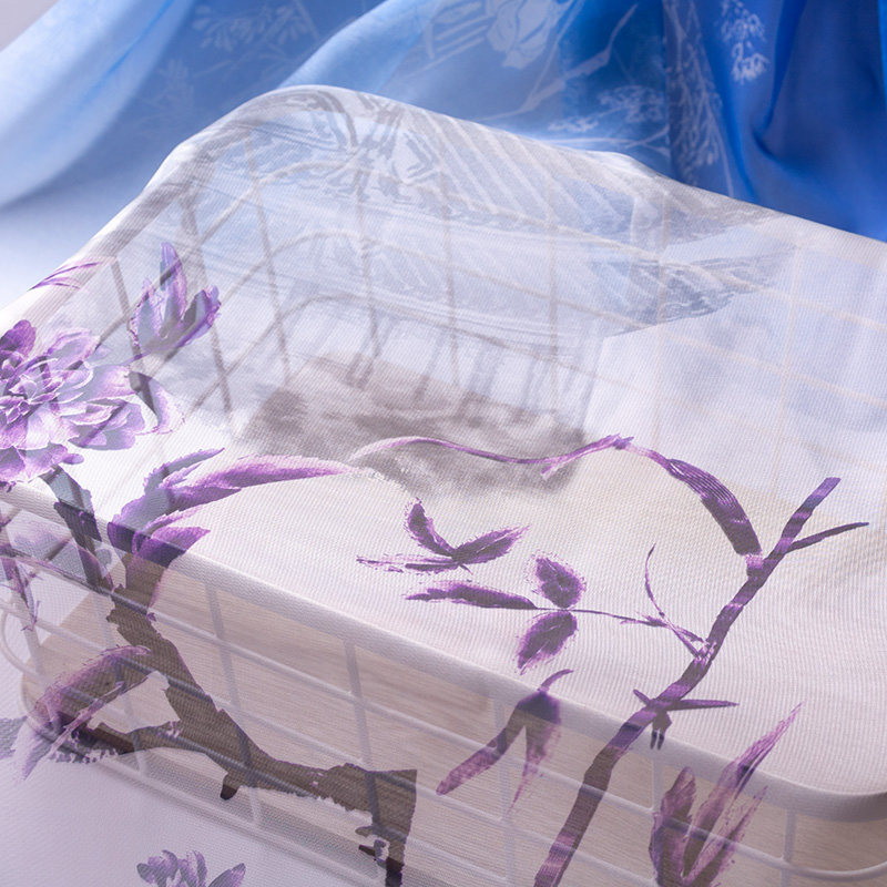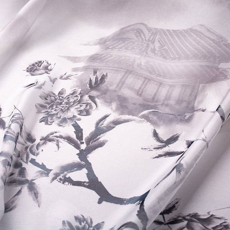 Summer 30D Hanfu Chiffon Printing Fabric Ancient Fengshan Shui People Bamboo Butterfly House Printing Antiquities Fabric