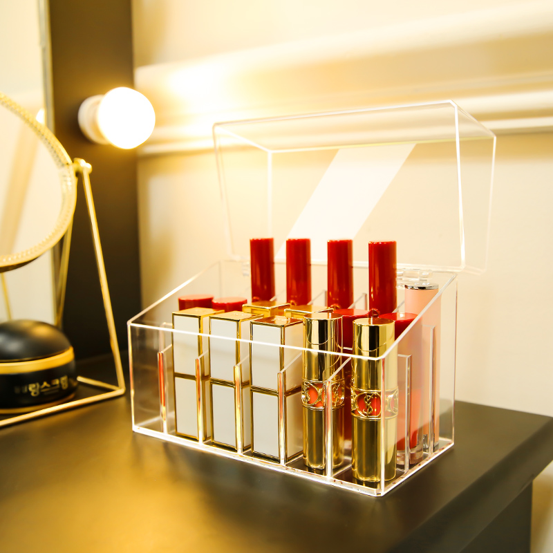 Net red lipstick box storage box transparent dustproof with lid multi-grid lip glaze girl heart cosmetics box storage layer shelf