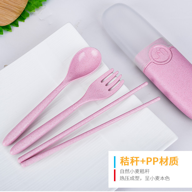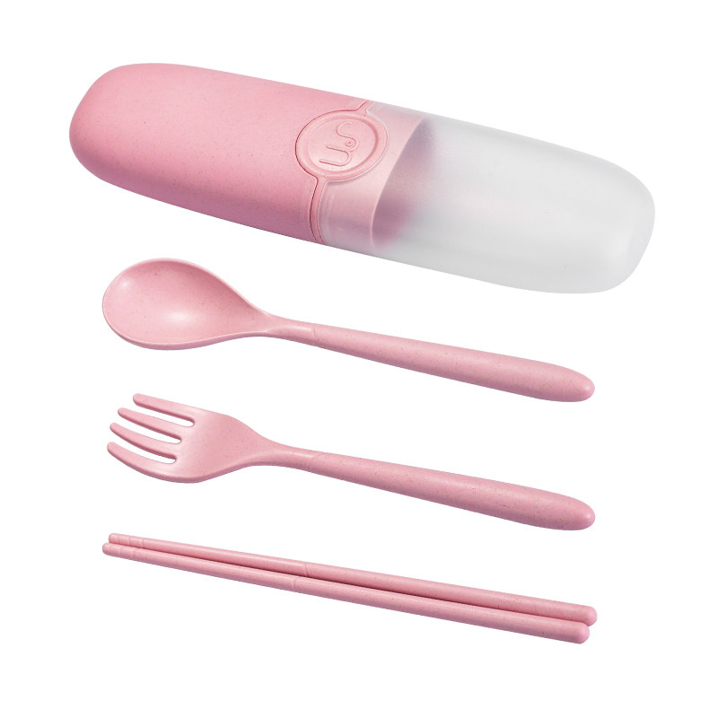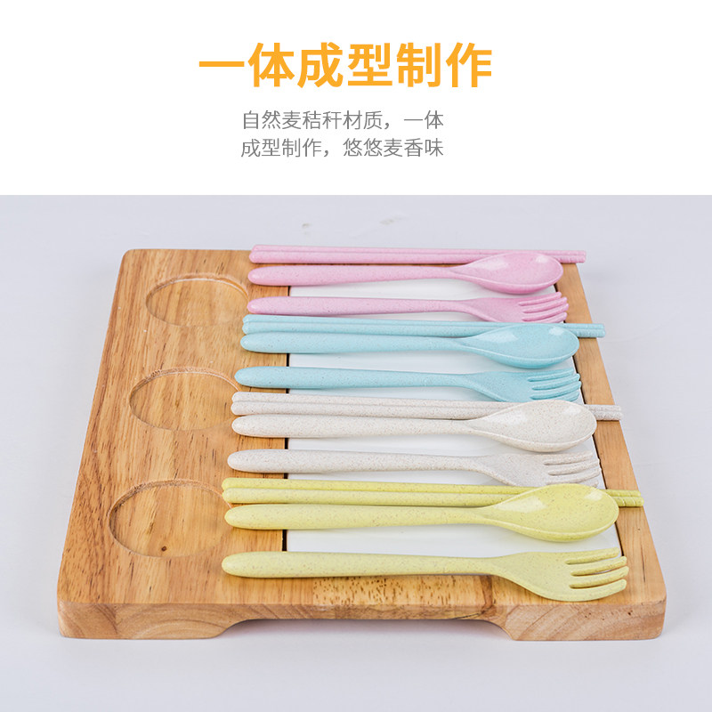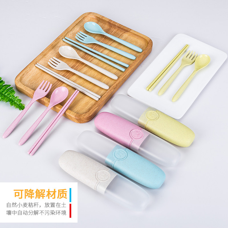 Wheat straw tableware three pieces of spoon fork chopsticks portable package children's Japanese cute tableware with chopsticks spoon fork