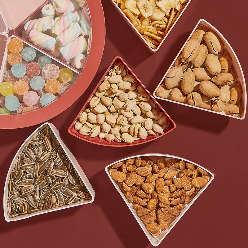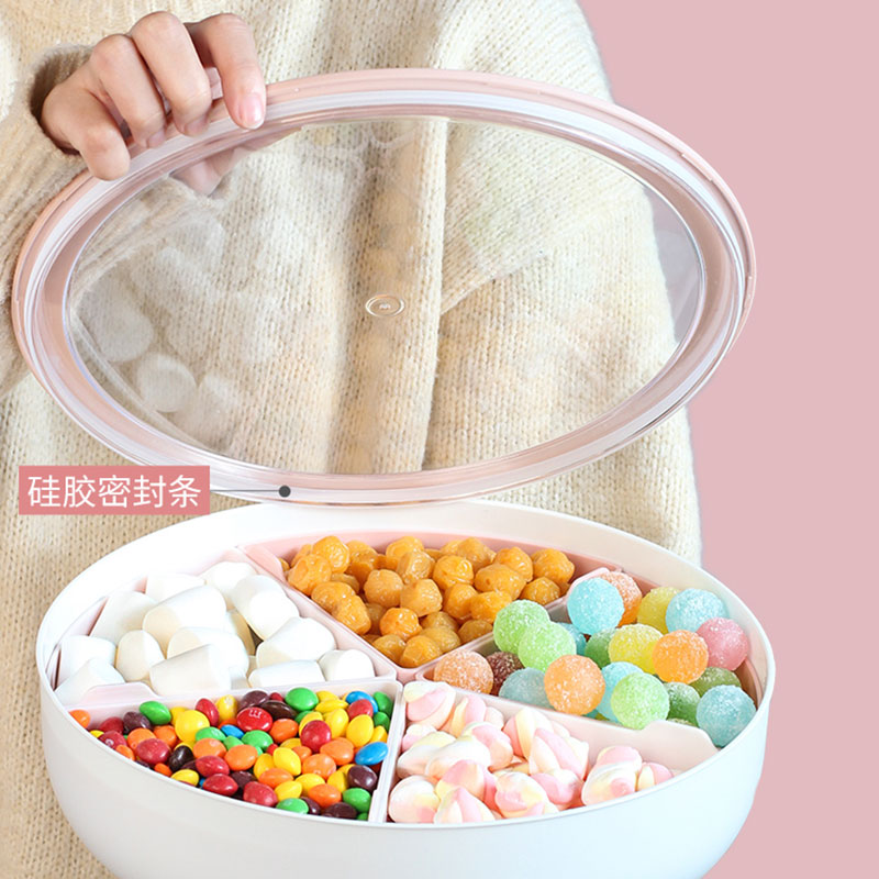 Wedding fruit plate red grid with lid Chinese wedding red happy plate Household living room round festive fruit plate New Year