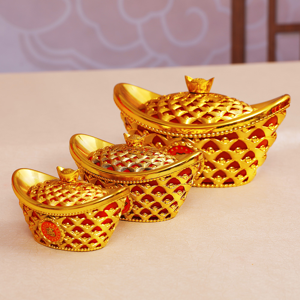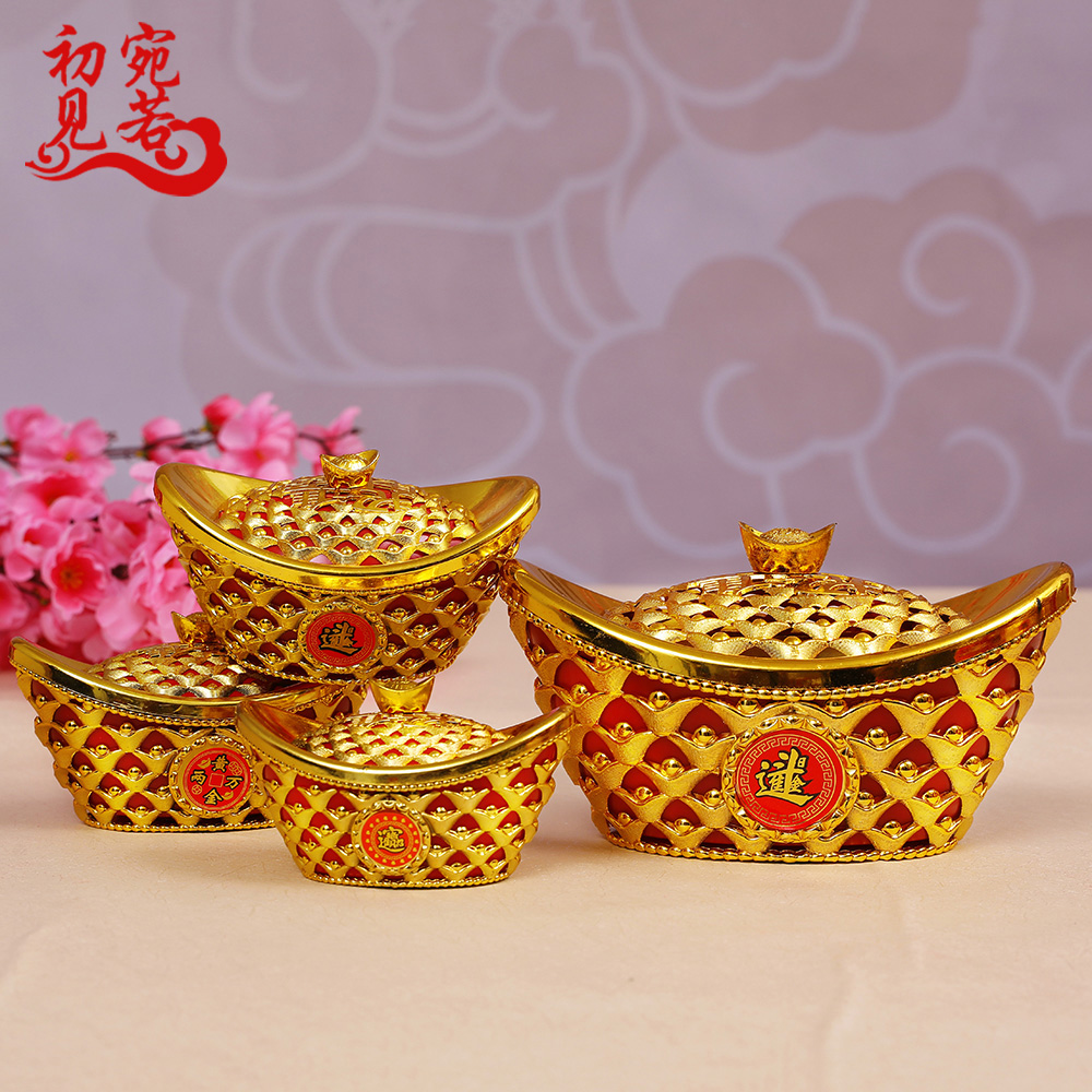 Simulation gold ingot ornaments Spring Festival lucky candy box Large ingot props Hollow Plastic New Year decorations