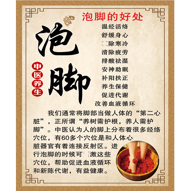 Foot bath benefits picture Foot bath Chinese medicine foot bath poster Foot massage shop decorative painting health map Foot bath hanging painting wall chart