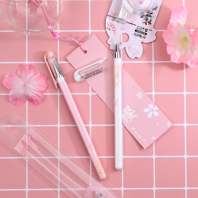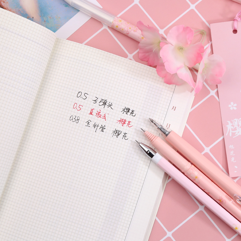 Cherry blossom season limit press neutral pen Korea Xiaoqing cute creative high school students with 0 5mm black press hydro pen and pen signed pen