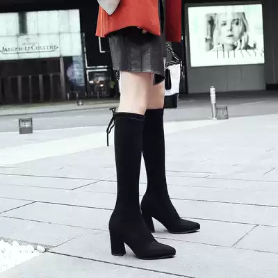But knee high boots women Autumn and Winter pointed high heel 2021 New elastic boots thick heel plus velvet boots slim single boots