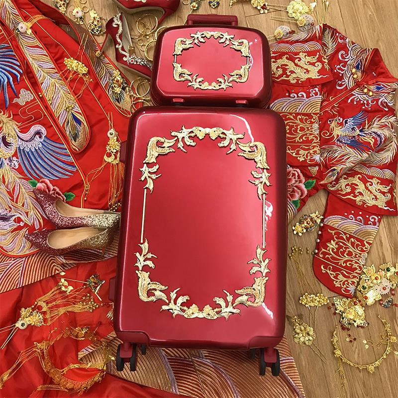 Red Marriage Box Red Marriage Surface Bride Married Qingra Road Box Silent Wheel Travel Child Box