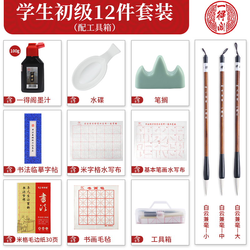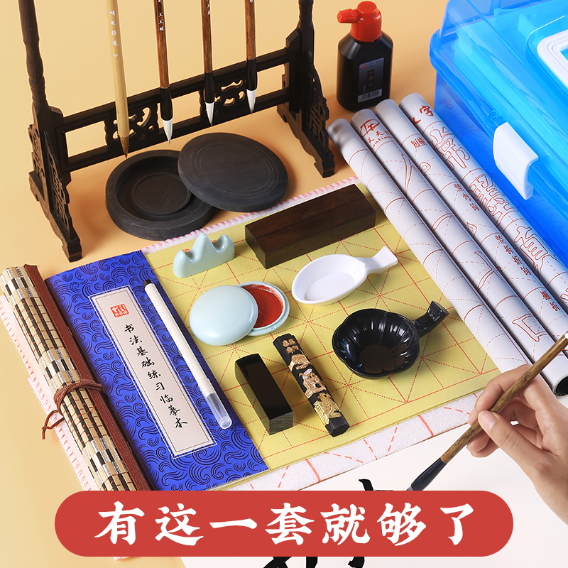 One Tory calligraphy Calligraphy Brush Suit Beginners Beginners Elementary School Students Wen Houses Four Treasures of Calligraphy Calligraphy children Mao pen words Calligraphy Paper Water Writing Cloth Linen Ink Paper Inkstone Ink and White Cloud Calligraphy Special