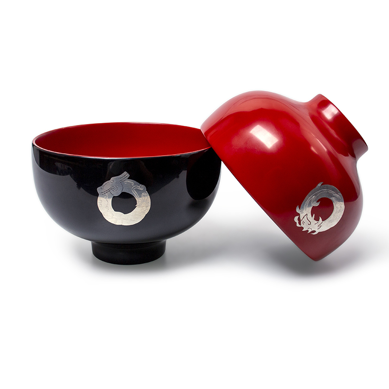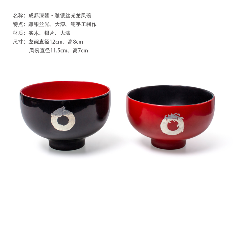 Chengdu lacquerware) Large lacquer non-heritage craft gift decoration Happy bowl Wedding pair bowl High foot wooden bowl Dragon and phoenix bowl set