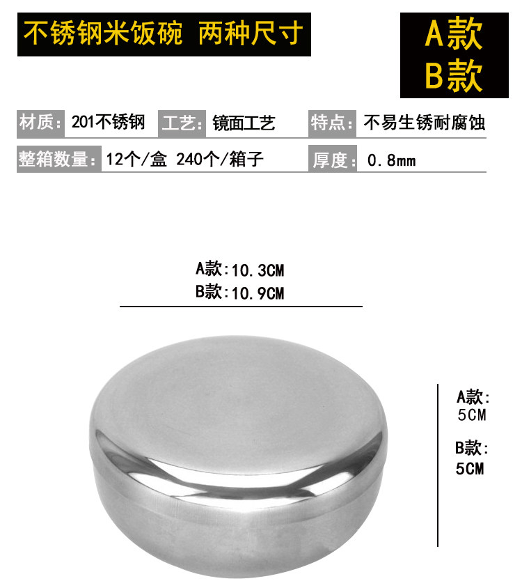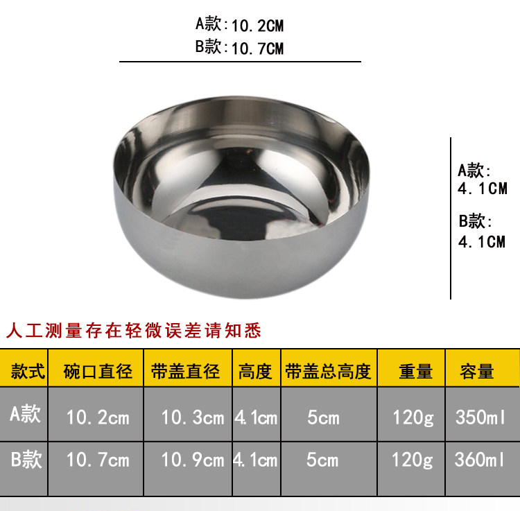 Korean restaurant Korean food bowl stainless steel with lid rice bowl single-layer bowl two sizes thick and durable not rust
