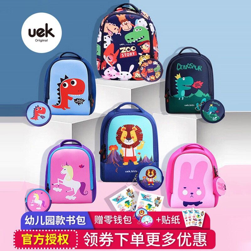 uek kindergarten bag children boy boy girl 1-3-5 year old cute cartoon double shoulder bag wave small bag