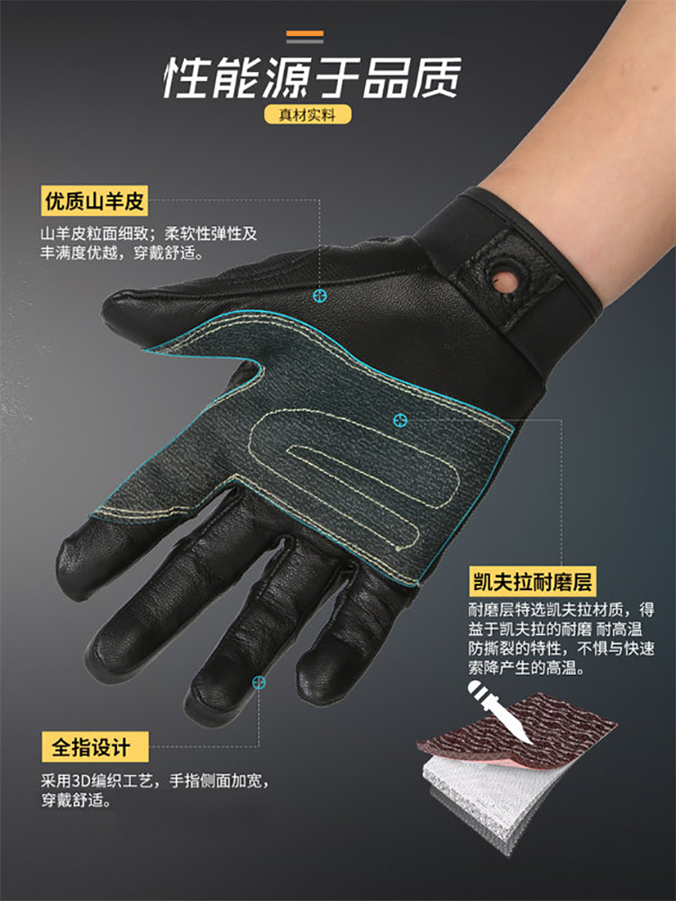 Xinda outdoor cable-down gloves Sheepskin downhill force rescue team training Abseiling hole exploration SRT sliding equipment