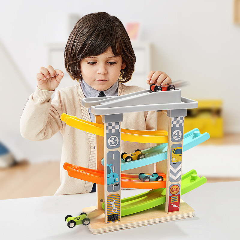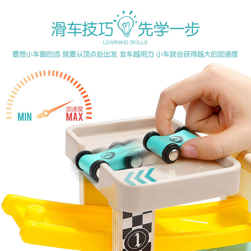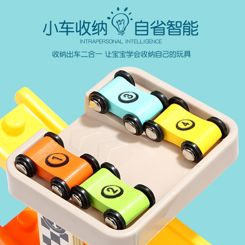 Race Speed Track Glide car for fear of lost trolley 4 (co-8 dolly) pecking wood bird six track Racing Pecking Wood Birds Catch (lifting focus on eye coordination) Six-track race speed glider for fear of losing dolly