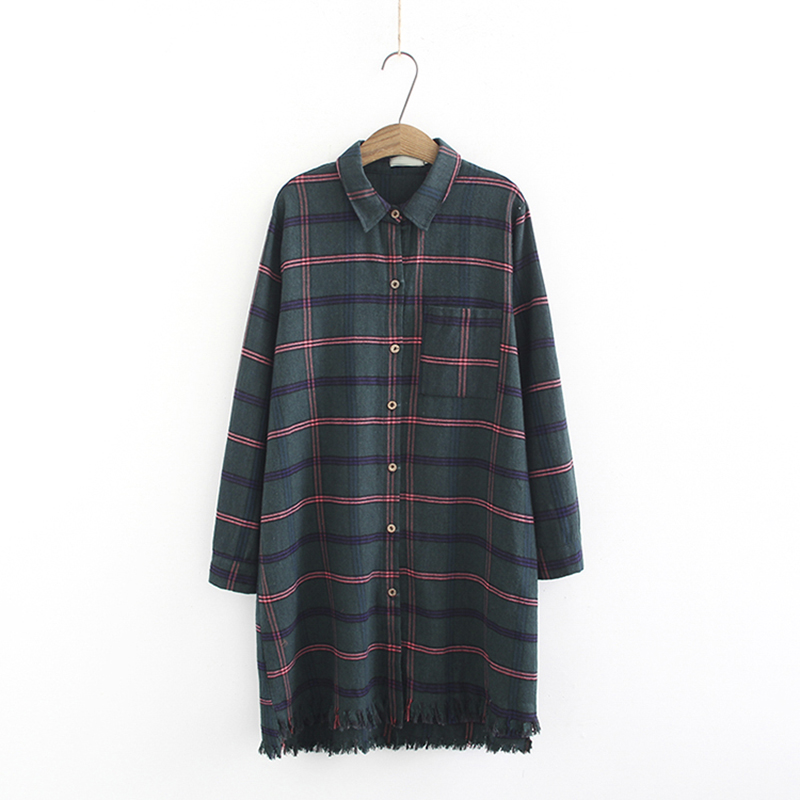 Spring New Gats Plus Size Women's Dress Mid Aged Cotton Medium Long Version Plaid Shirt Woman Fat Mom Dress Shirt