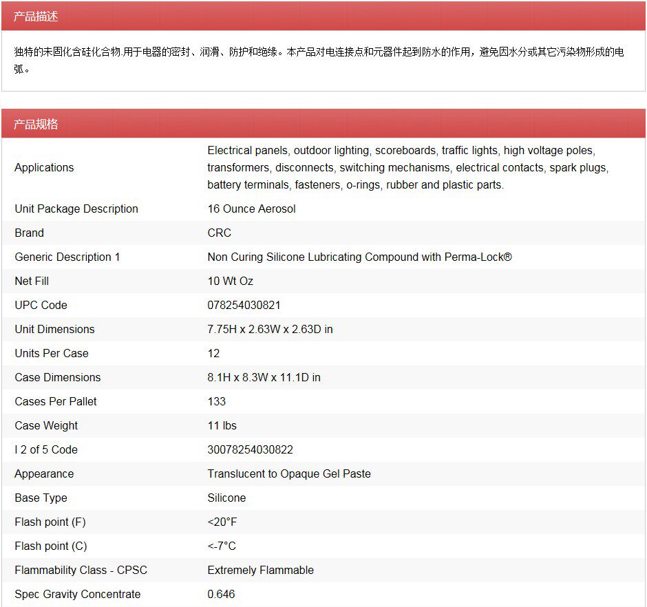 Original American CRC03082 high voltage insulation grease Electrical connector switch high voltage surface insulation grease