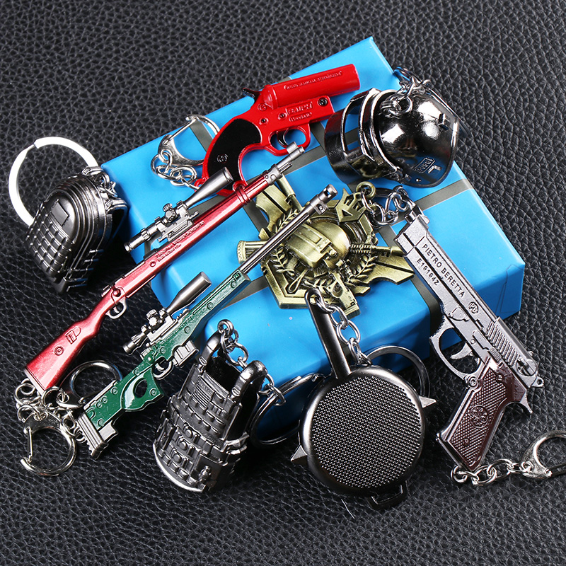Jedi chicken-eating boy survival toys stimulate the surrounding alloy weapon model three-level head keychain full set