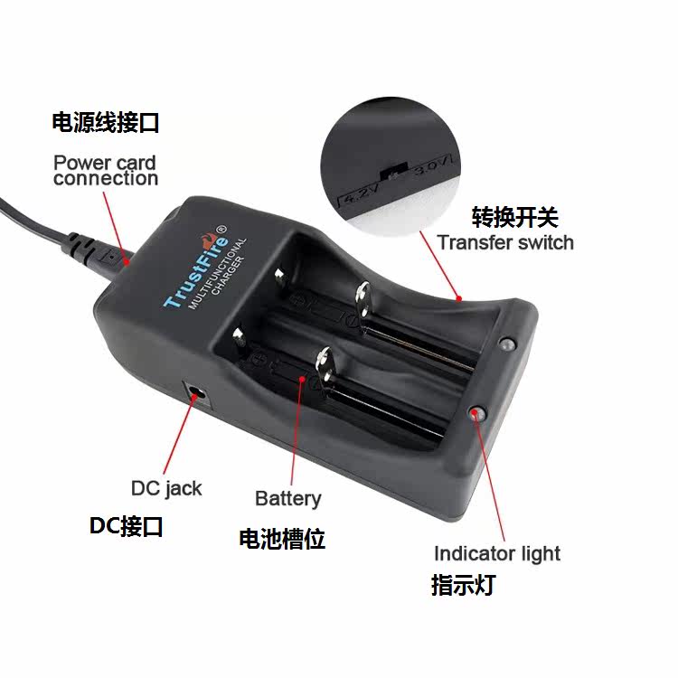 Trustfire TR-006 Dual Voltage 3.0V 4.2V Multifunction Lithium Battery Charger