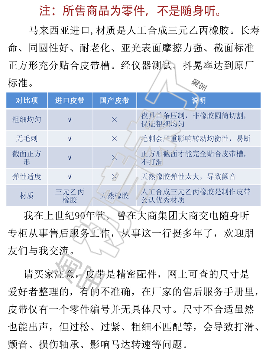 Sony walkman tape machine special belt GX760 GX674 GX688 GX808 and other imported long life