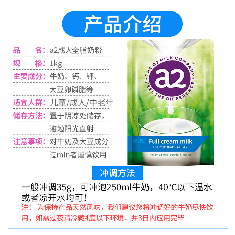 Australian imports A2 Adult milk powder Whole fat Milk Powder for children Students pregnant women with high calcium high protein supplement