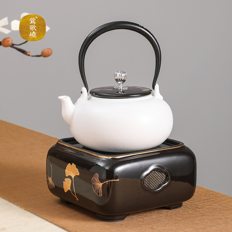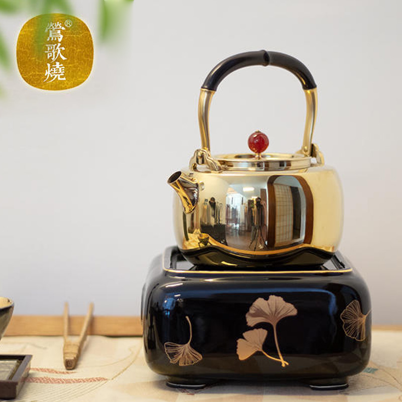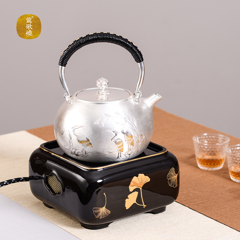 Yingge burning black crystal furnace Household tea making tea making furnace Desktop small iron pot Silver pot tea making tea making black crystal furnace