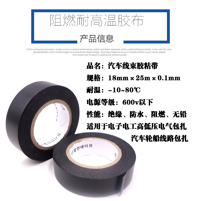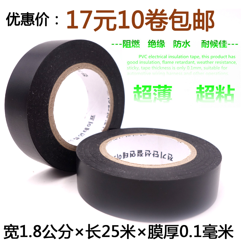 Electrical tape PVC super-sticky ultra-thin lead-free waterproof electrical insulation black tape Automotive wiring harness tape length 25 meters