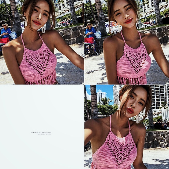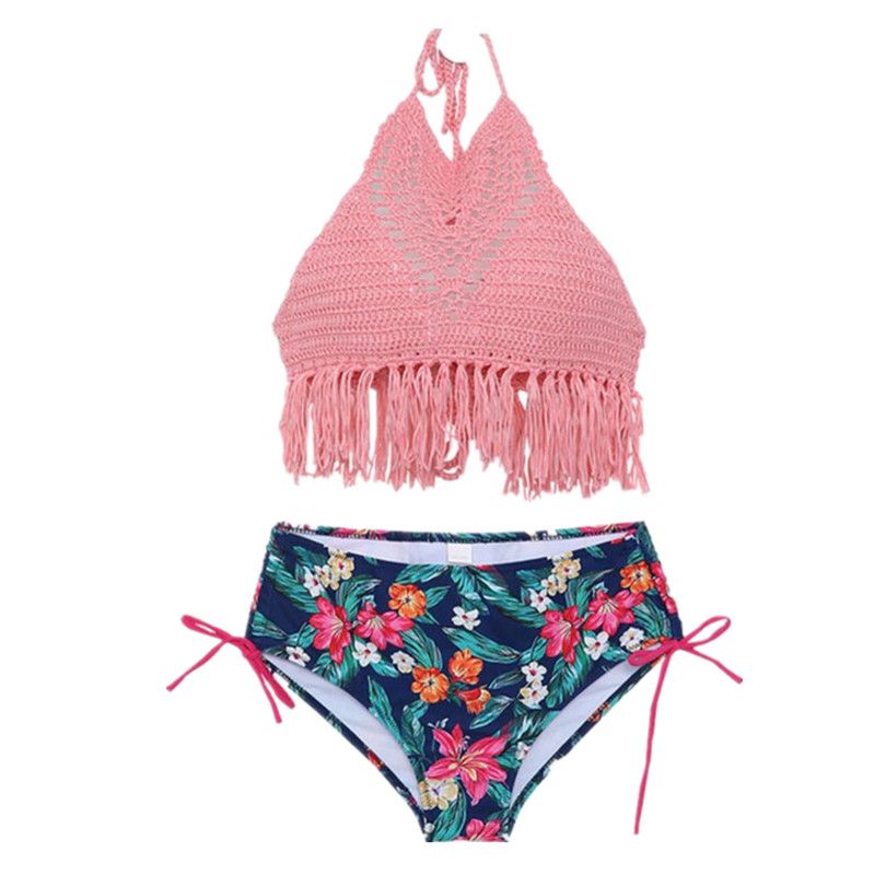 High-end bikini net red white knitted two-piece swimsuit Female island style super fairy beach 2019 new vacation