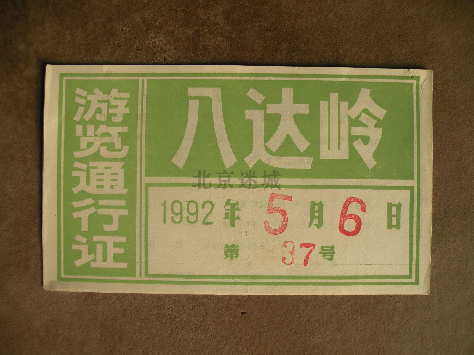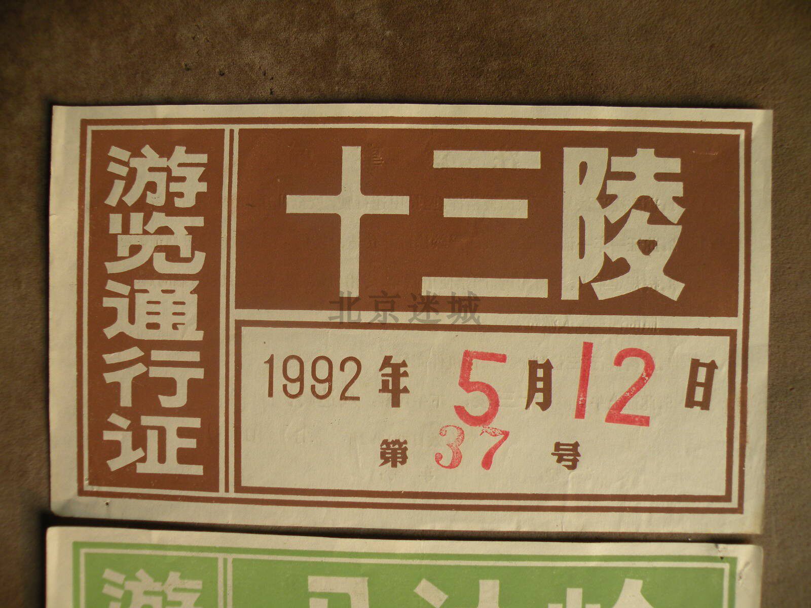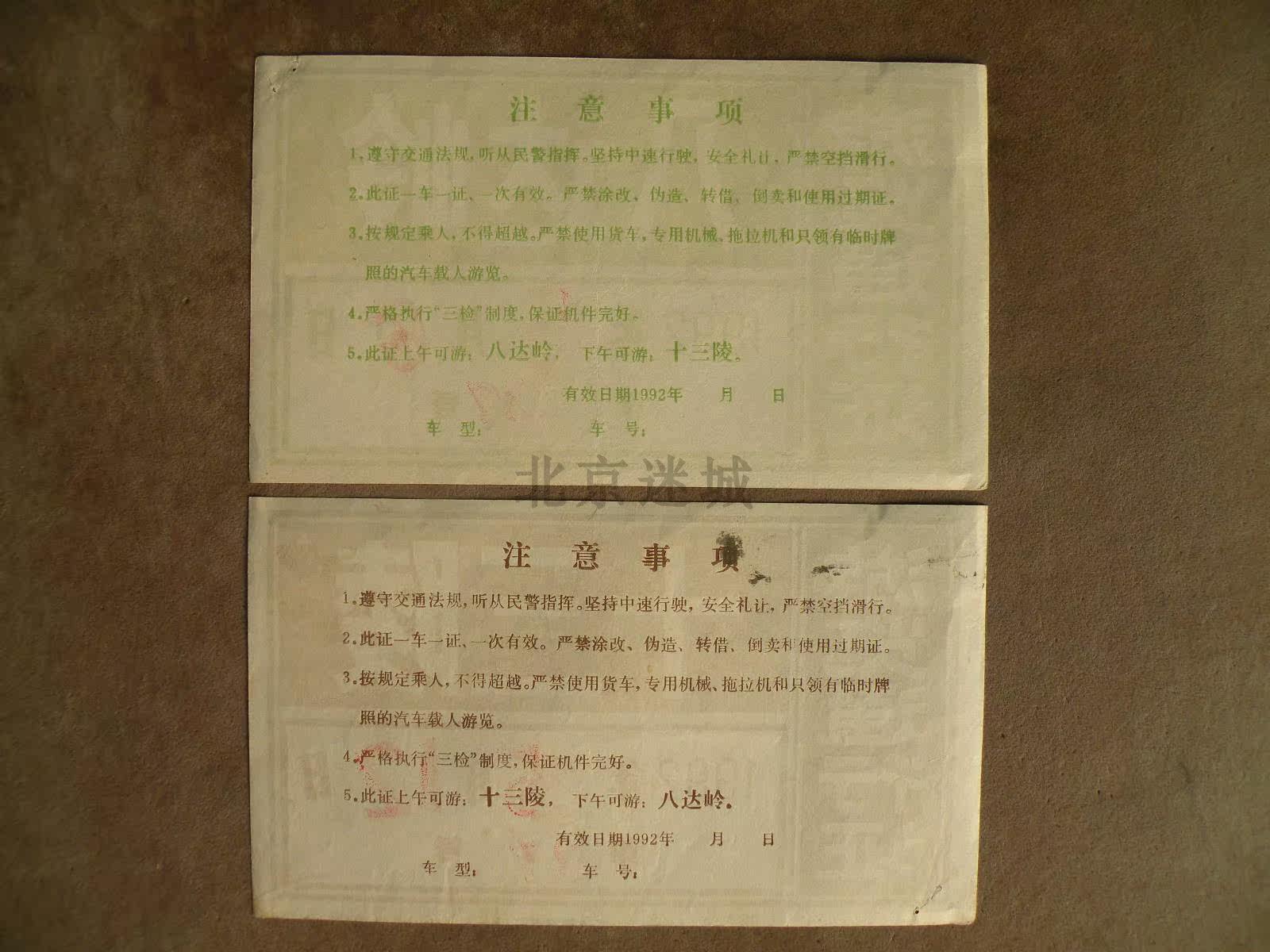 1992 Beijing Badaling's XIII Mausoleum Visit Pass 2 Old Ticket Beijing Traffic Old Objects