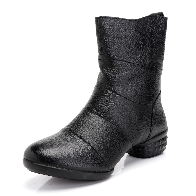 Belle Autumn Winter Genuine Leather Dance Shoes Women's Square Dance Shoes Jazz Modern Dancing Shoes Soft-bottom Water Soldiers Dance Boots