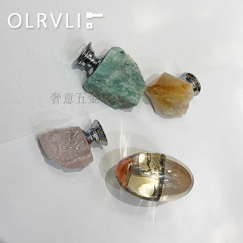 Italian Nordic light luxury brass crystal handle drawer cabinet bedside table furniture handle original pink crystal handle