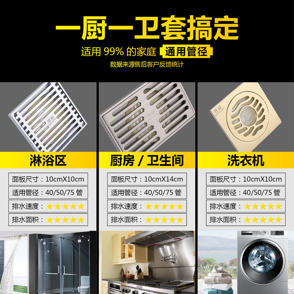 Crown Invisible Deodorant Floor Drain All Copper Zircon Gold 50 Shower Bathroom Makeup Room Toilet Floor Drain Deodorant Inner core ZG-005