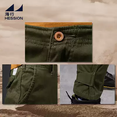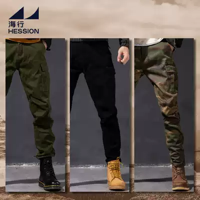 Military green multi-bag overalls men winter plus velvet padded straight tube pants wear Tide brand loose black casual pants