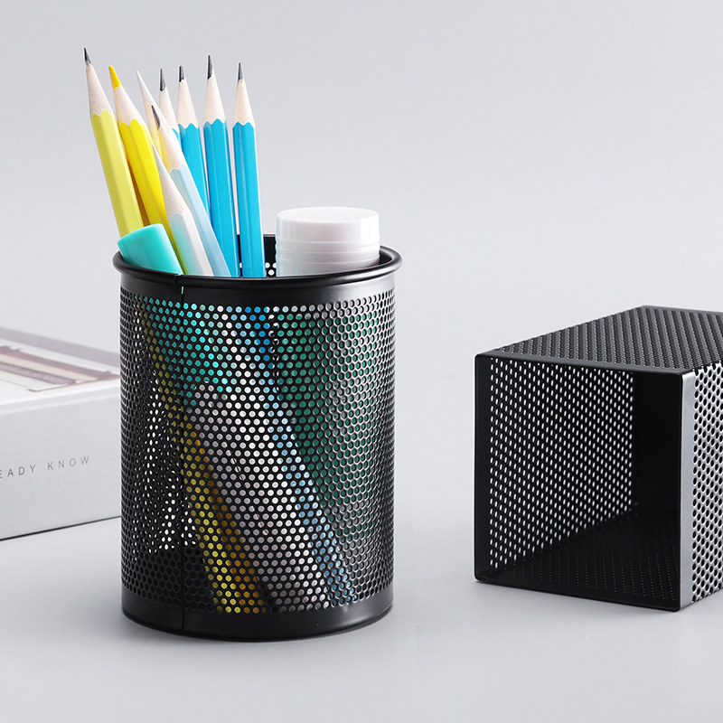 Deli metal mesh pen holder Business white-collar simple and generous dense mesh round exquisite pen holder durable storage