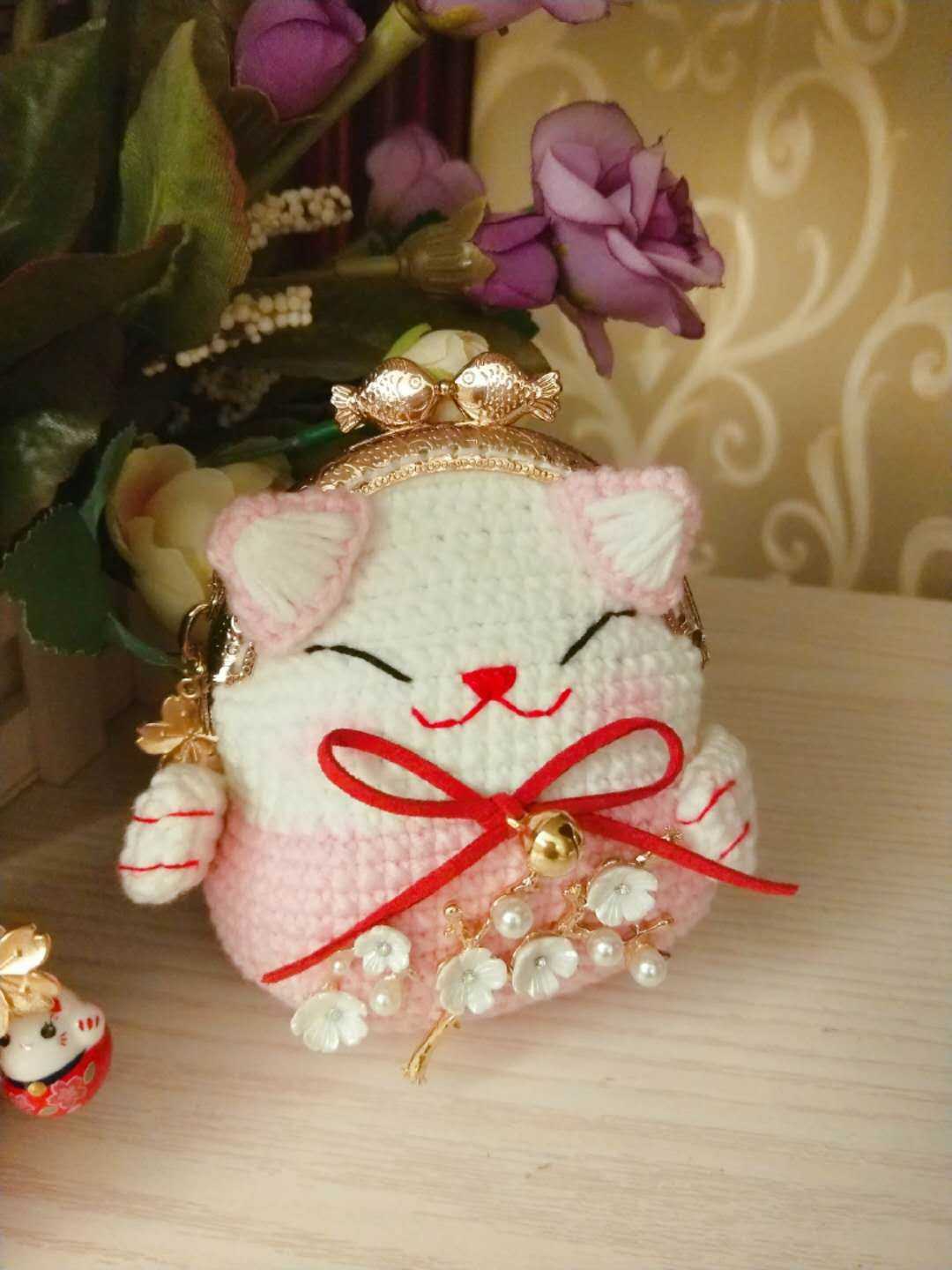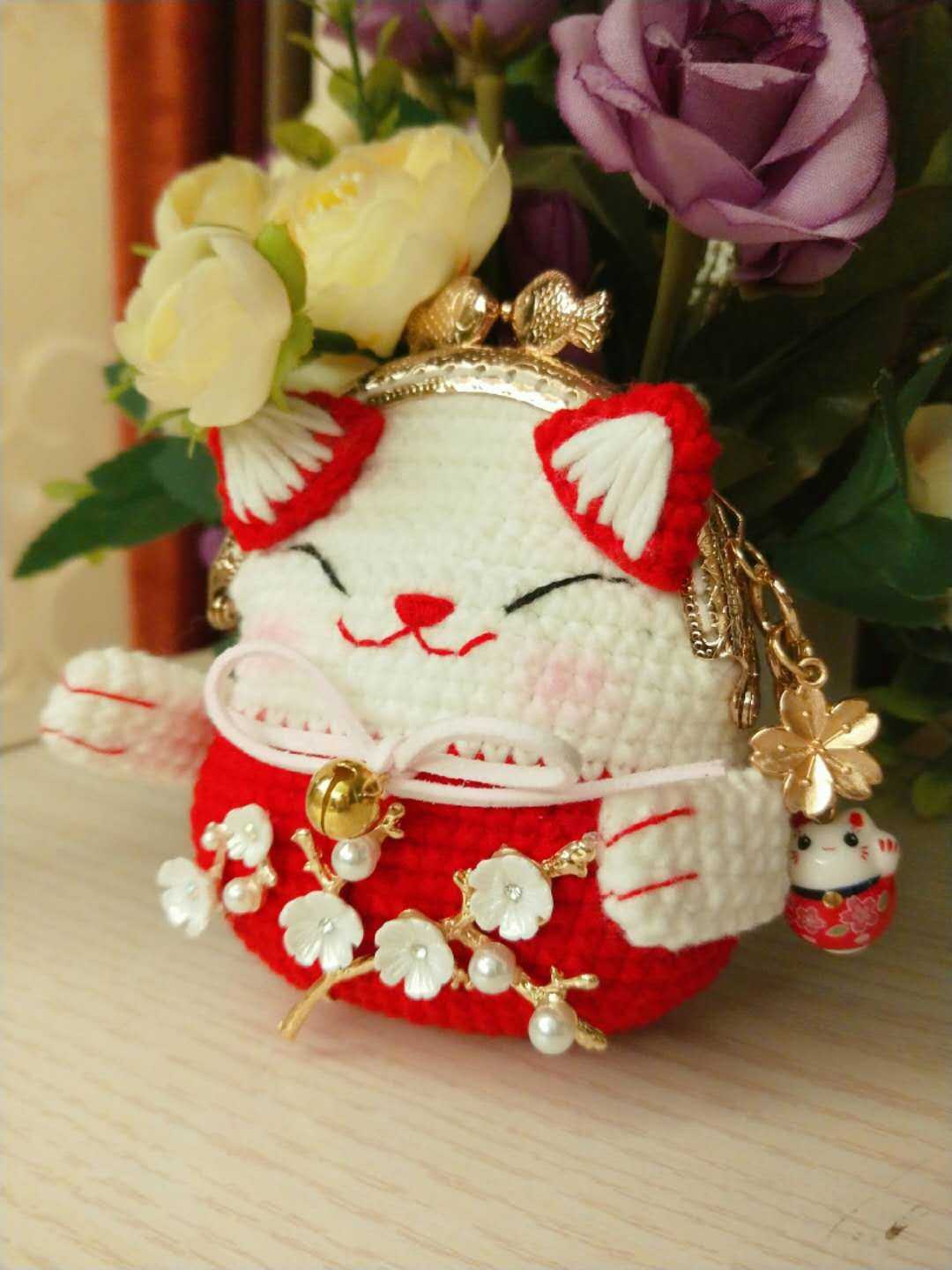 Mango Family Diy Pure Hand Crochet Hook Loom 8 5 Strokes Cat Zero Money Bag Stuffed Wool Doll Finished Product