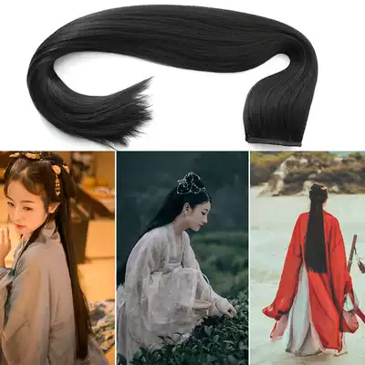 Ancient costume black hair film ancient style wig single head medium and long micro hair