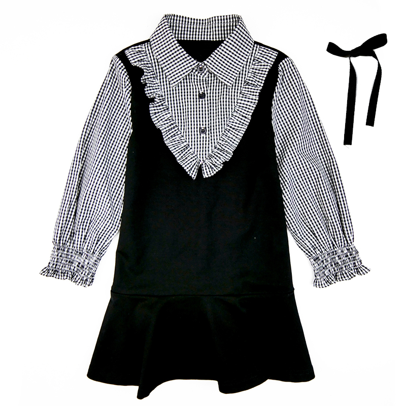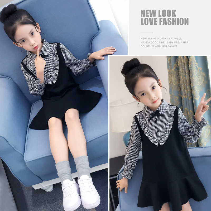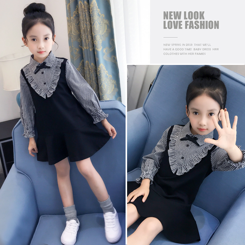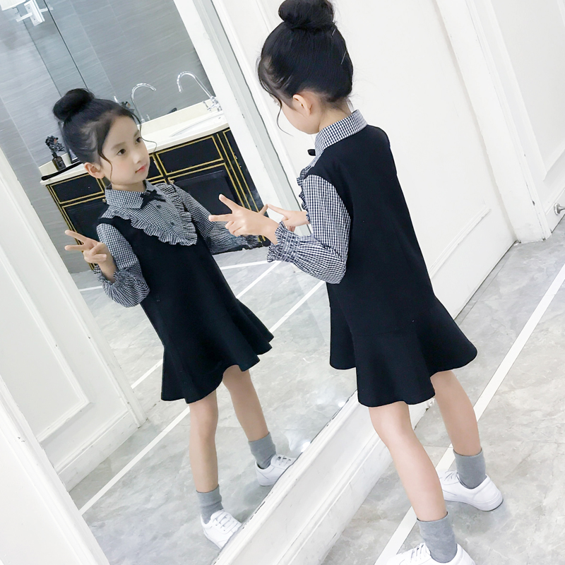 Girl Spring Autumn Ocean Dress New Children's Clothes Children Fake Two Plaid Dresses Female Great Children Korean Version Long Sleeve Dress