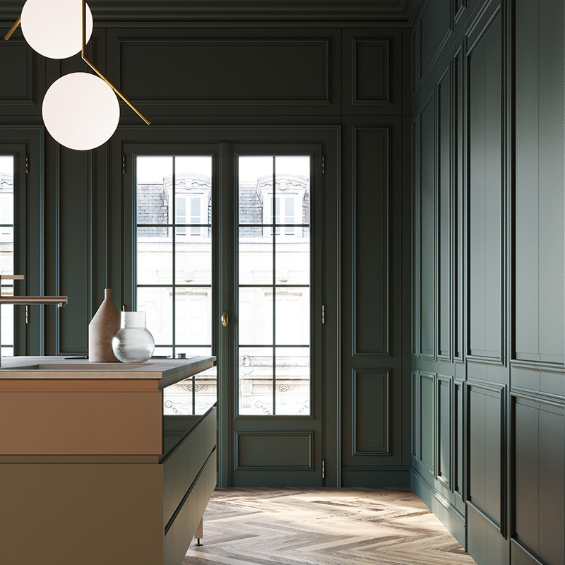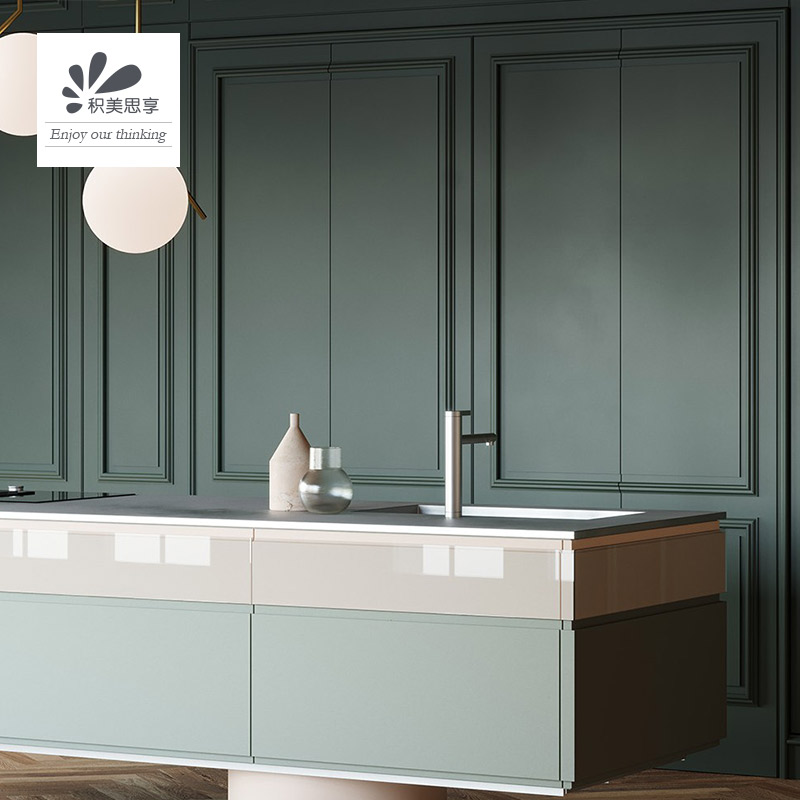 Jimei Sixiang living room wall panel decoration solid wood retro green TV background wall custom light luxury wall panel custom