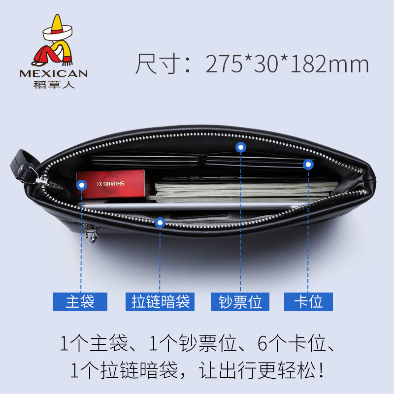 Scarecrow 2022 new men's clutch bag men's leather business men's wallet fashion leather envelope bag
