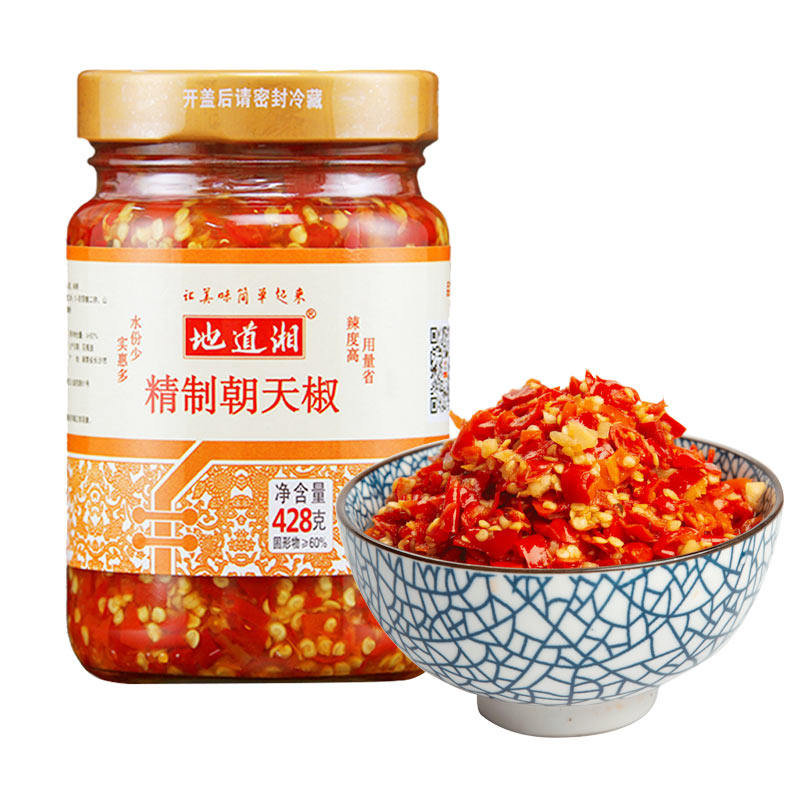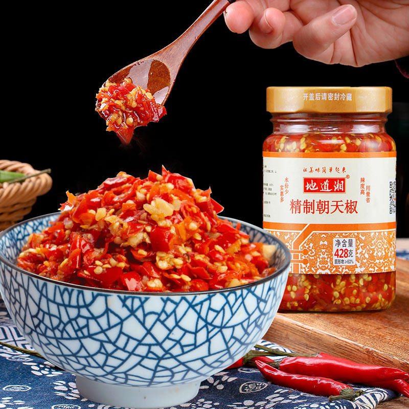 Super spicy chopped pepper garlic authentic Hunan 428g*2 bottles Chaotian pepper chili sauce Hunan spicy rice specialty chopped pepper