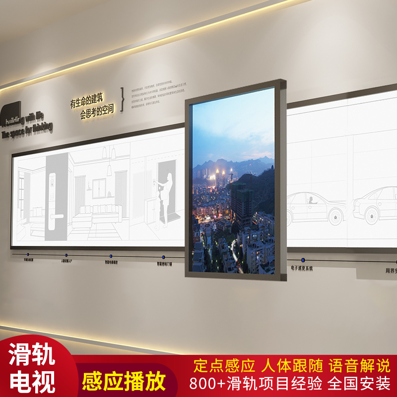 Interactive touch screen slide rail TV manually push-pull electric mobility transparent slide rail TV screen showroom linear guide