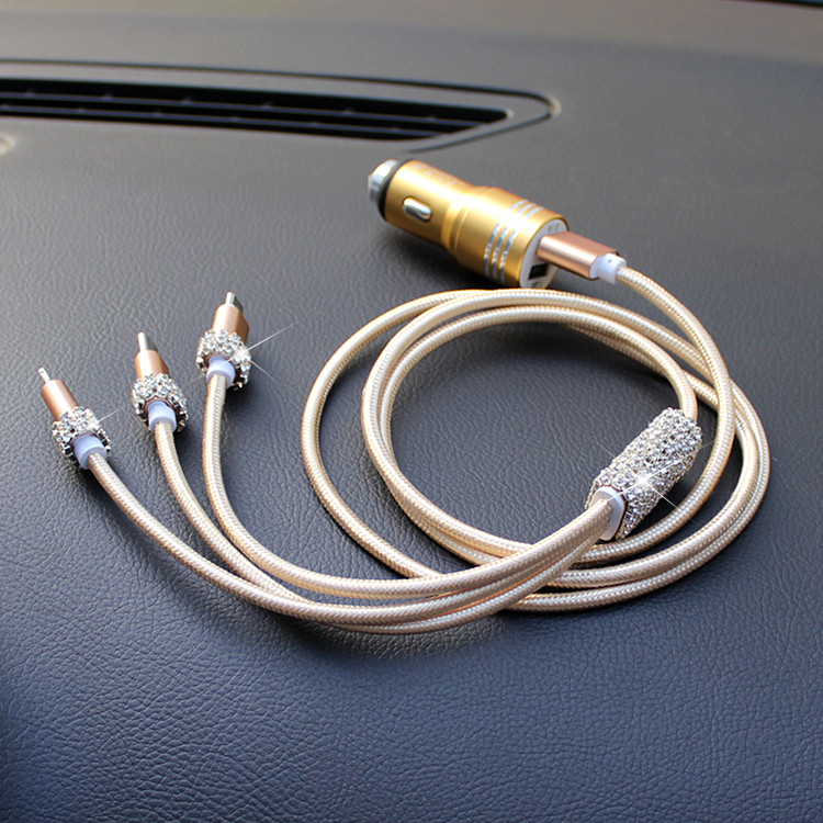 Diamond-studded car charger one-to-two car cigarette lighter plug smart fast charge multi-function mobile phone car charger with cable