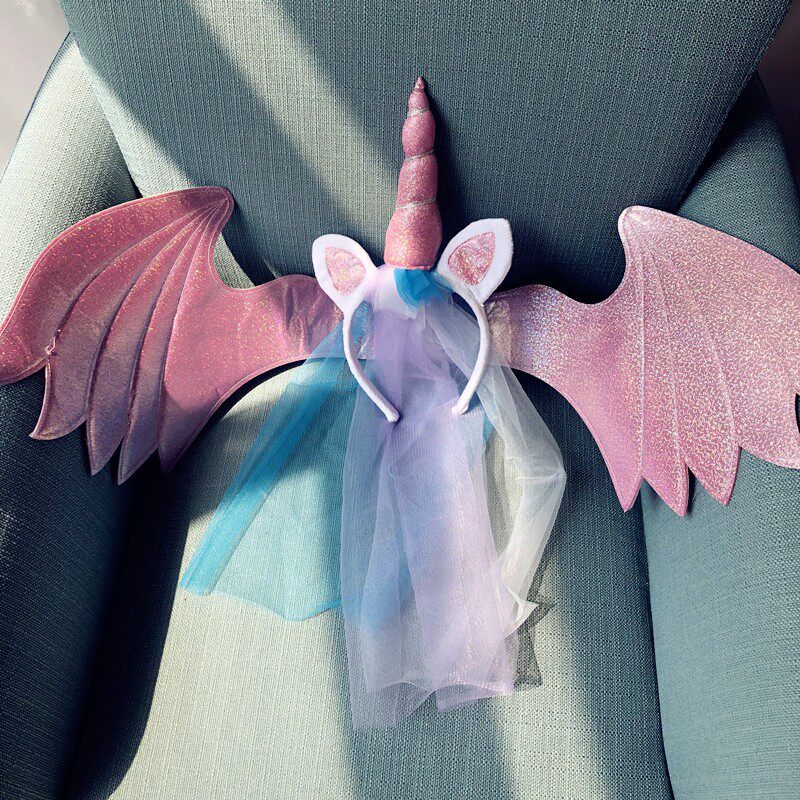 Colorful Unicorn Cape Headband Unicorn Sequin Cape Headband Minnie's Cape Hairband White Feather Cape Batman Wings Headband