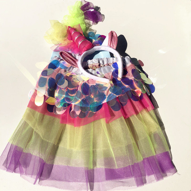 Special Clearance Foreign Trade Girls Unicorn Skirt Hair Accessories Set Party Dress Up Crown Cloak Two-piece Set