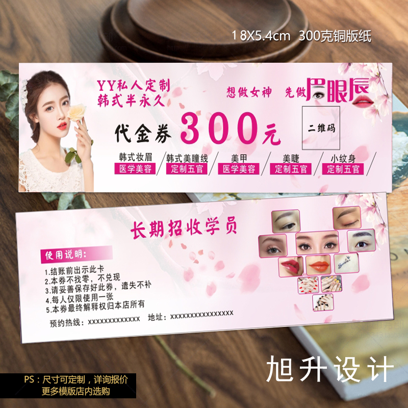 Korean semi-permanent makeup creative custom beauty nail embroidery Business card voucher coupon experience card printing