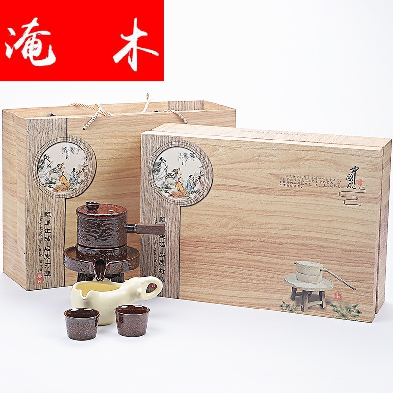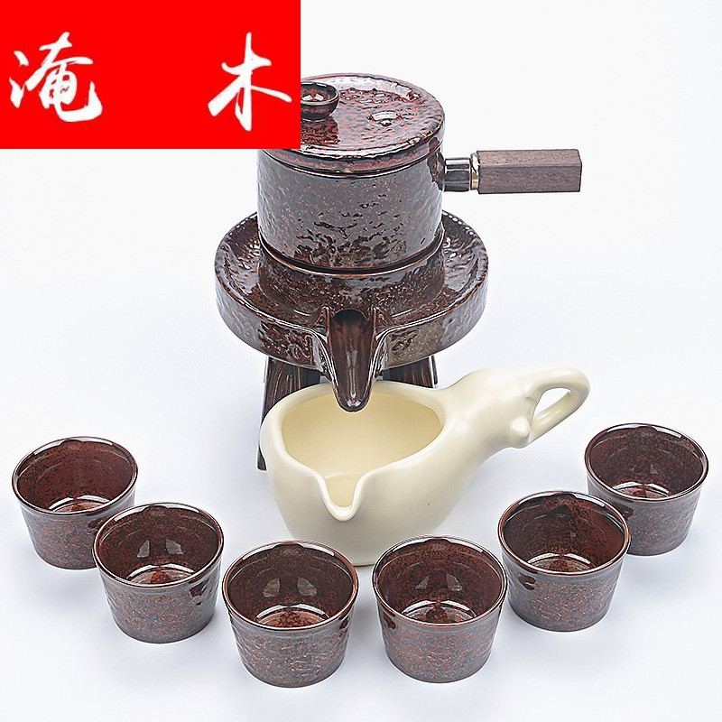 Yanmu semi-automatic tea set set Lucky turn Ceramic anti-hot stone grinding Kung fu tea maker