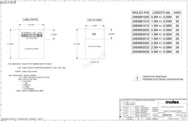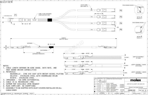400G Molex QSFP-DD 4*QSFP28 DAC 0 5 - 3 0m 2065661010 Series